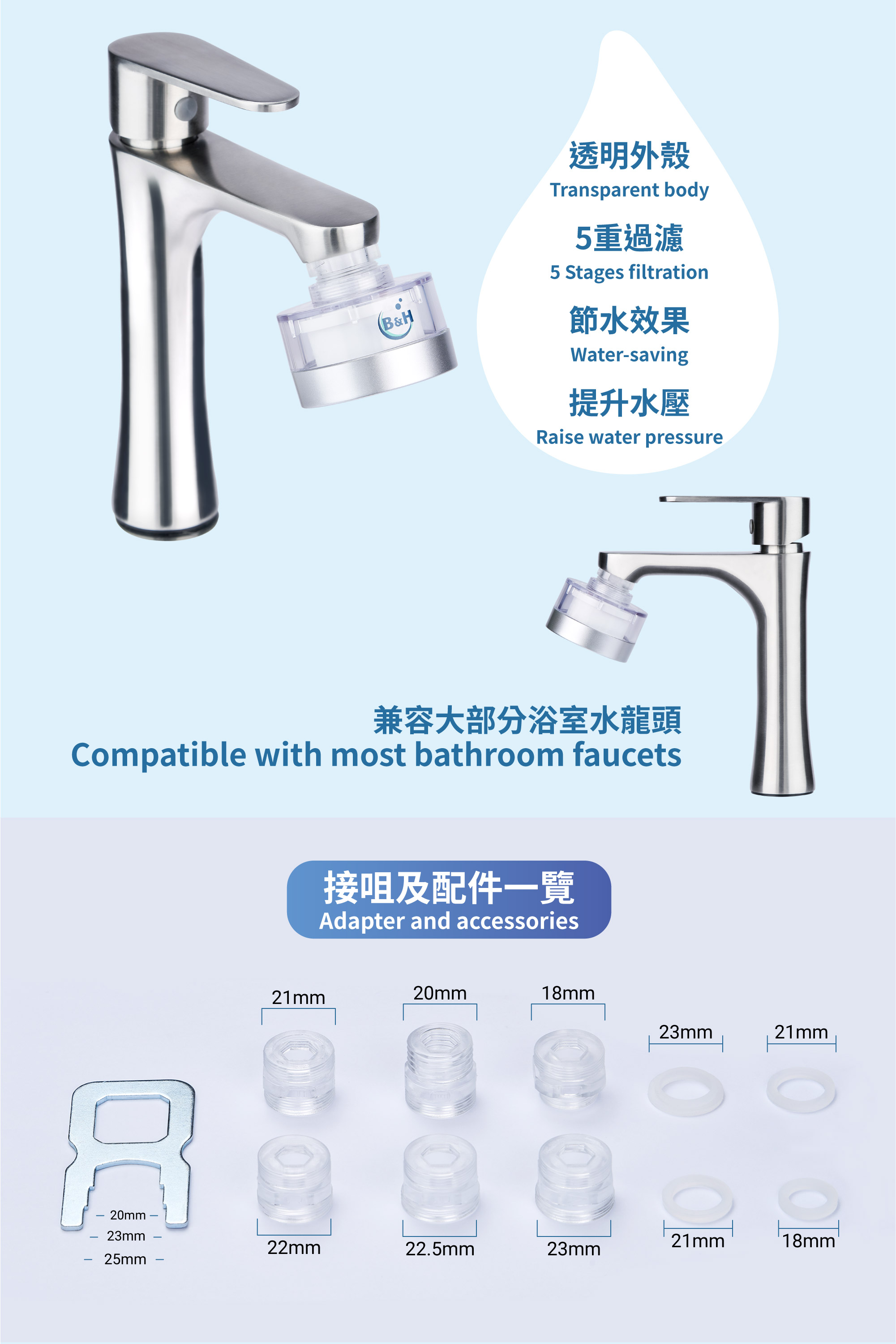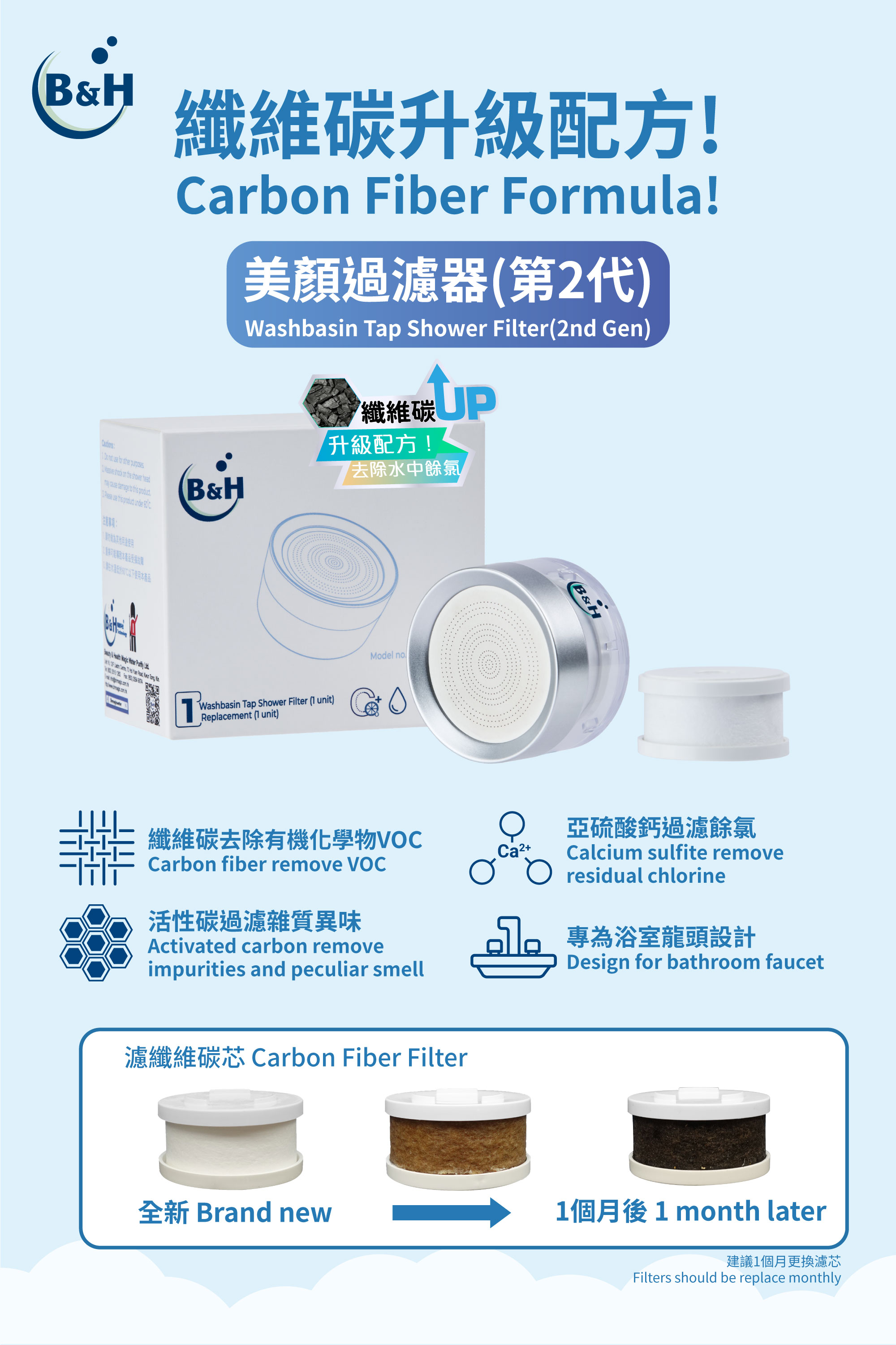 B&H Washbasin Tap Shower Filter Replacement 3 Pack(2nd Gen)Showmore