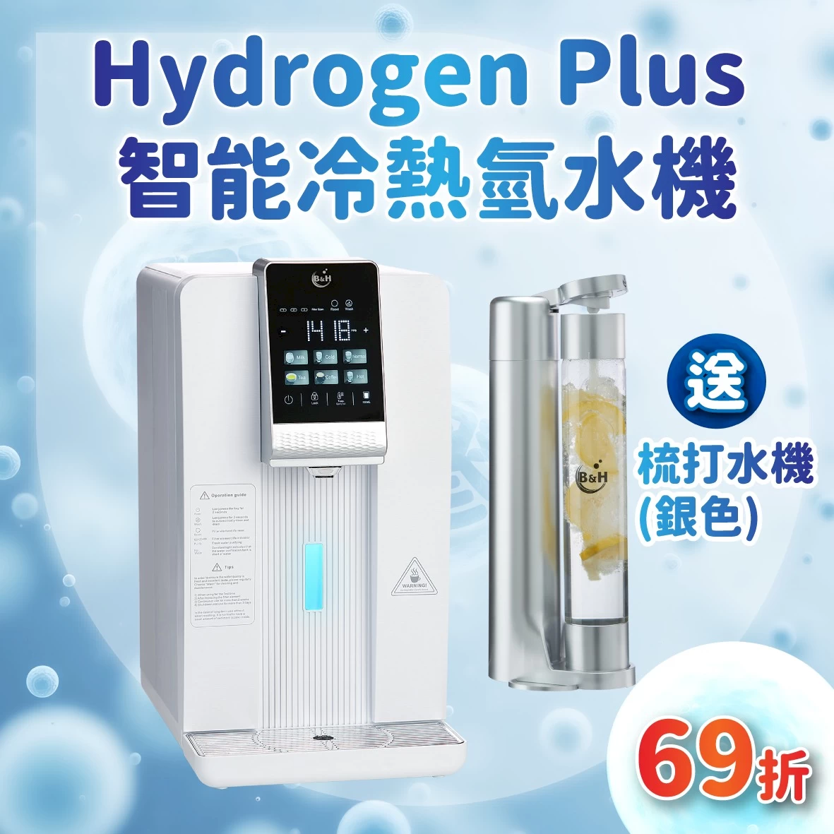 B&H 全新 Hydrogen Plus 冷熱氫水機,具備冷、熱、過濾、製氫、UV殺菌5合1,為你帶來健康新體驗!